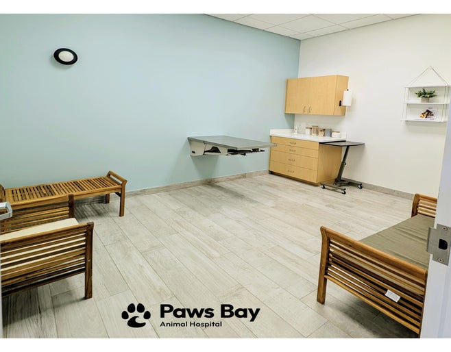 Paws Bay Animal Hospital features an inviting waiting room and spacious, comfortable exam rooms, creating a warm and welcoming atmosphere to ensure your visit is relaxing and enjoyable.